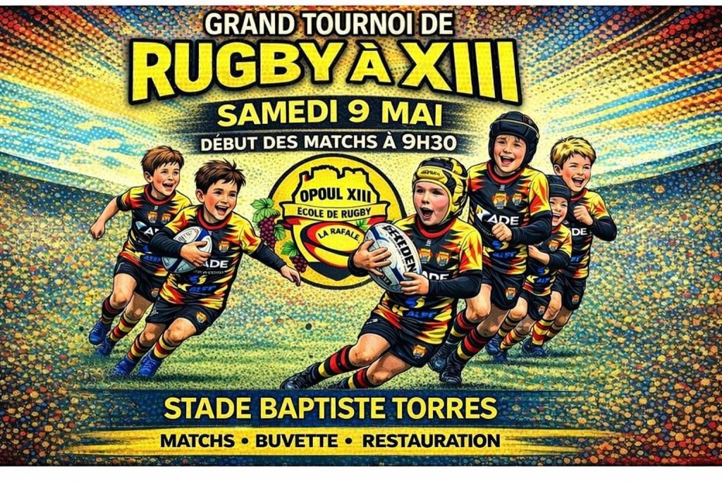 L'association de rugby à XIII organise un grand tournoi le samedi 09 mai 2026, au stade Baptiste TORRES. Début des matchs à 9h30, restauration sur place! Venez...