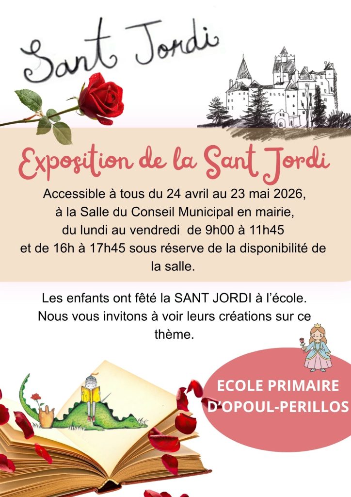 L'exposition "Sant Jordi" est accessible à tous du 24 avril au 23 mai 2026, à la Salle du Conseil Municipal en mairie, du lundi au vendredi de 9h00 à 11h45 et de 16h à 17h45 sous réserve de la...