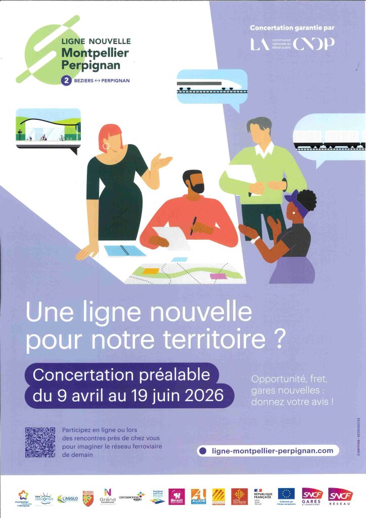 Votre avis compte ! Dans le cadre du projet de Ligne Nouvelle Montpellier Perpignan, une phase de concertation publique est organisée du 9 avril au 19 juin sur la phase 2 du projet (Béziers-Perpignan). Ce projet, qui concerne directement notre territoire, vise à...