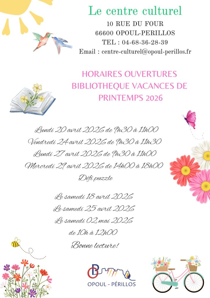 Nous vous informons que la bibliothèque sera ouverte pendant les vacances de...